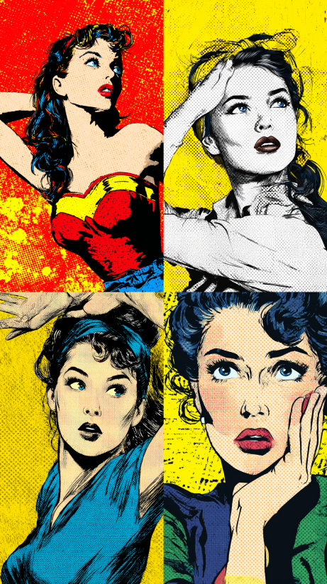 - Cómic: “bold inking”, “halftone texture”.